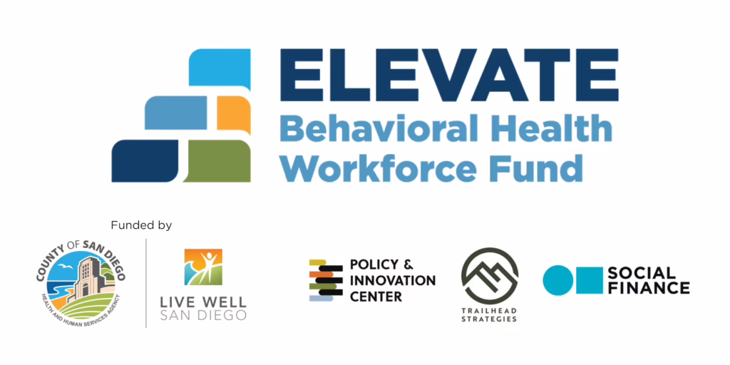 The Policy & Innovation Center (PIC), in partnership with Social Finance and Trailhead Strategies, co-designed ELEVATE. ELEVATE is funded by the County of San Diego through the Mental Health Services Act Innovation Fund. PIC leads implementation alongside its partners, building an infrastructure rarely seen in the behavioral health field.